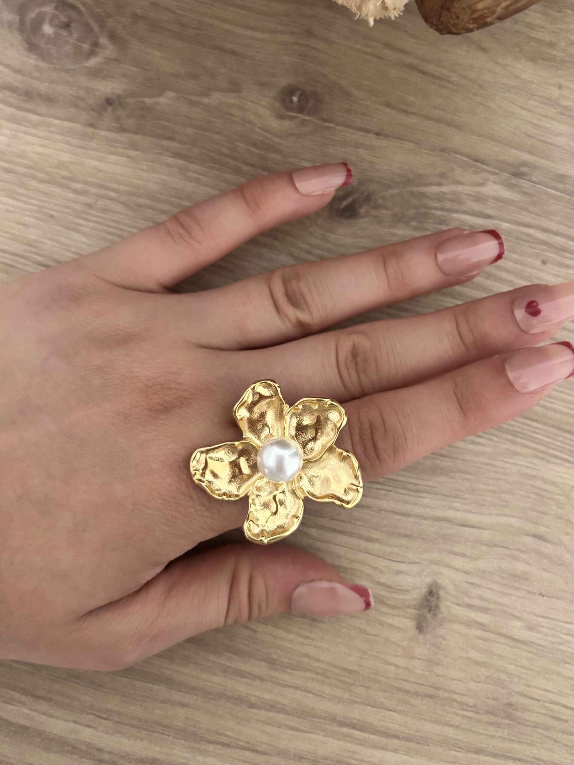 Craquez pour la jolie bague fleurs dorée