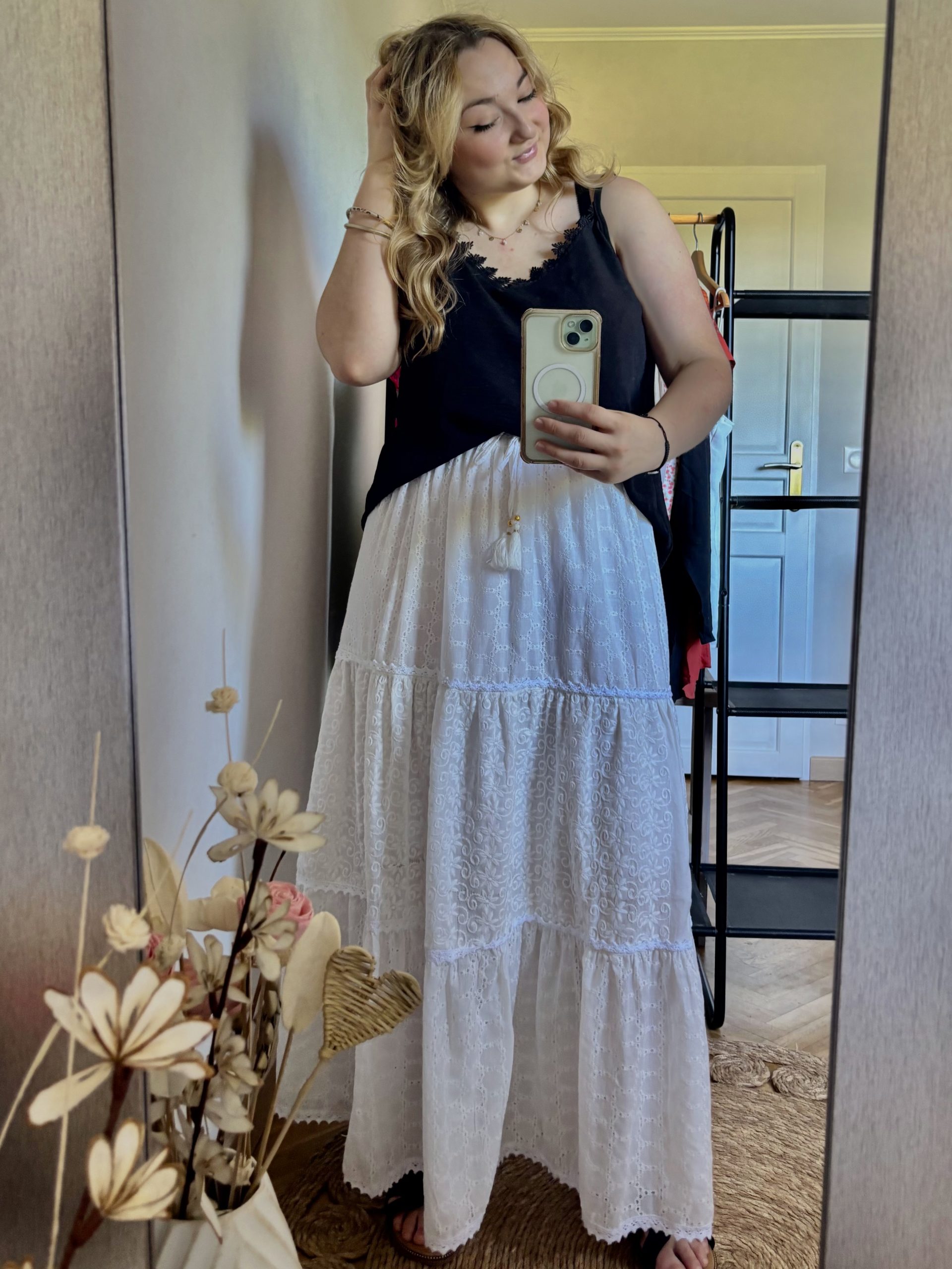 Craquez pour la jolie jupe blanche brodée « Judy », un must-have pour votre garde-robe bohème. Cette jolie pièce allie tendance et originalité.